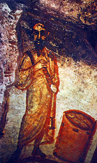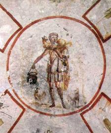 Paintings in the catacombs, which date back to the 3rd and 4th centuries CE, have this same male image. Some images are of are Marduk, some are of Apollo and other Pagan Gods. The book "The Unknown Catacomb" is interesting and reveals much about the Pagan art seen in the catacombs.